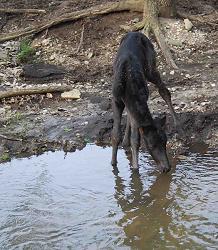 takes his time and checks out the creek, tastes the water and